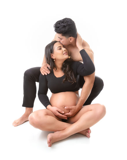 ✨ Fotografo gestantes no cenário sala ou no fundo branco — dois ambientes suaves, íntimos e atemporais.